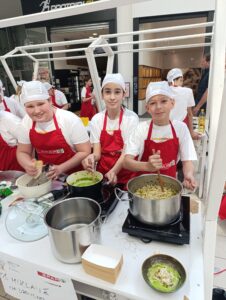 V petek, 17. 4. 2026, so trije učenci iz 6. d razreda kuhali v trgovskem centru Supernova na Ptuju in mimoidoče navduševali z okusno ječmenovo rižoto s šparglji in parmezanom, obogateno s kremno pasto iz graha. V šolo smo se vrnili s praznimi lonci in nasmehi na obrazih, ki so jih narisale pohvale okuševalcev. Delavnico je organizirala ga. Anka Peljhan iz projekta KuhnaPaTo.